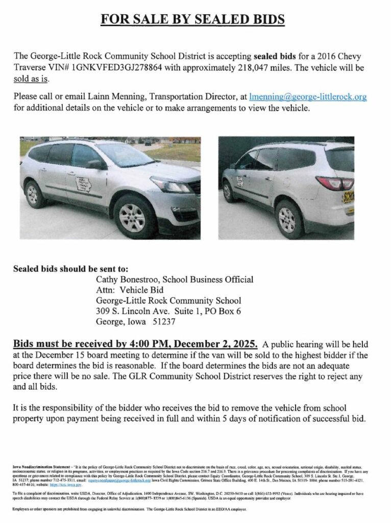 Vehicle for sale by sealed bid
